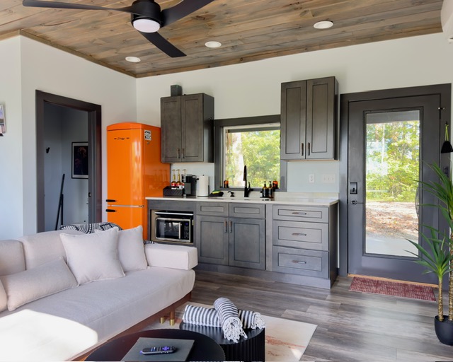 🍳 Compact Kitchen Comforts – Air fryer microwave, 2-burner induction cooktop, and Keurig coffee bar for easy mornings
